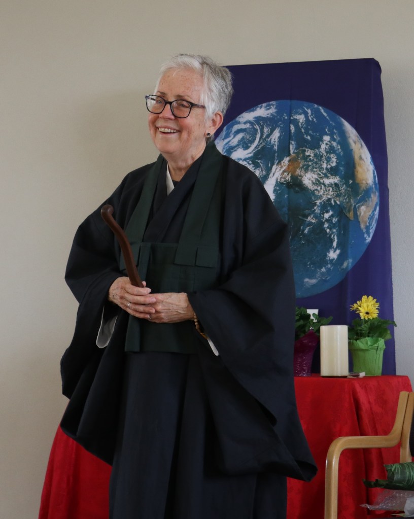 During her 25 years as a Dominican Sister, she studied and practiced Soto Zen informally. In the mid 90’s she began formal Zen Buddhist training with Sojun Diane Martin, founder of Udumbara Zen Center. She was ordained in 2010 and received Dharma transmission in 2016.